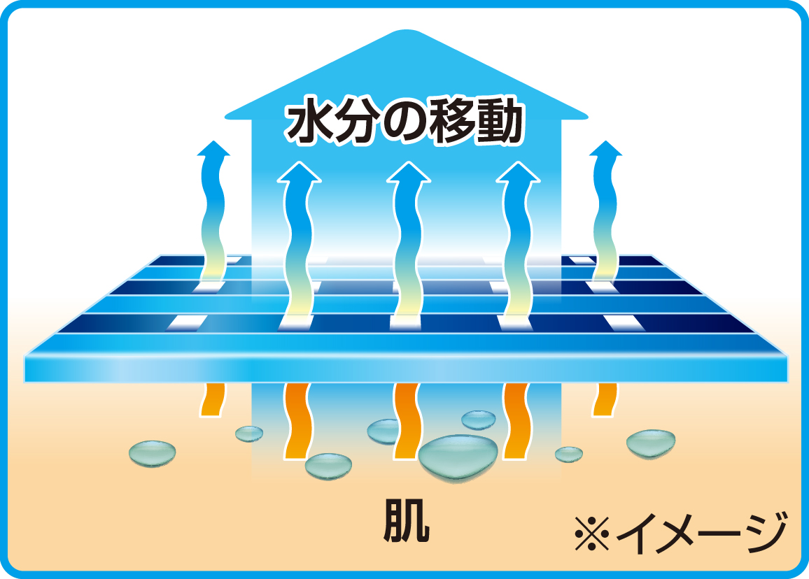 ムレを抑える薄くて通気性の良いドライメッシュ編みと、肌側には快適性を高める吸水速乾素材を採用しました。長時間着用してもムレにくく、さらっと快適に使用できます。
