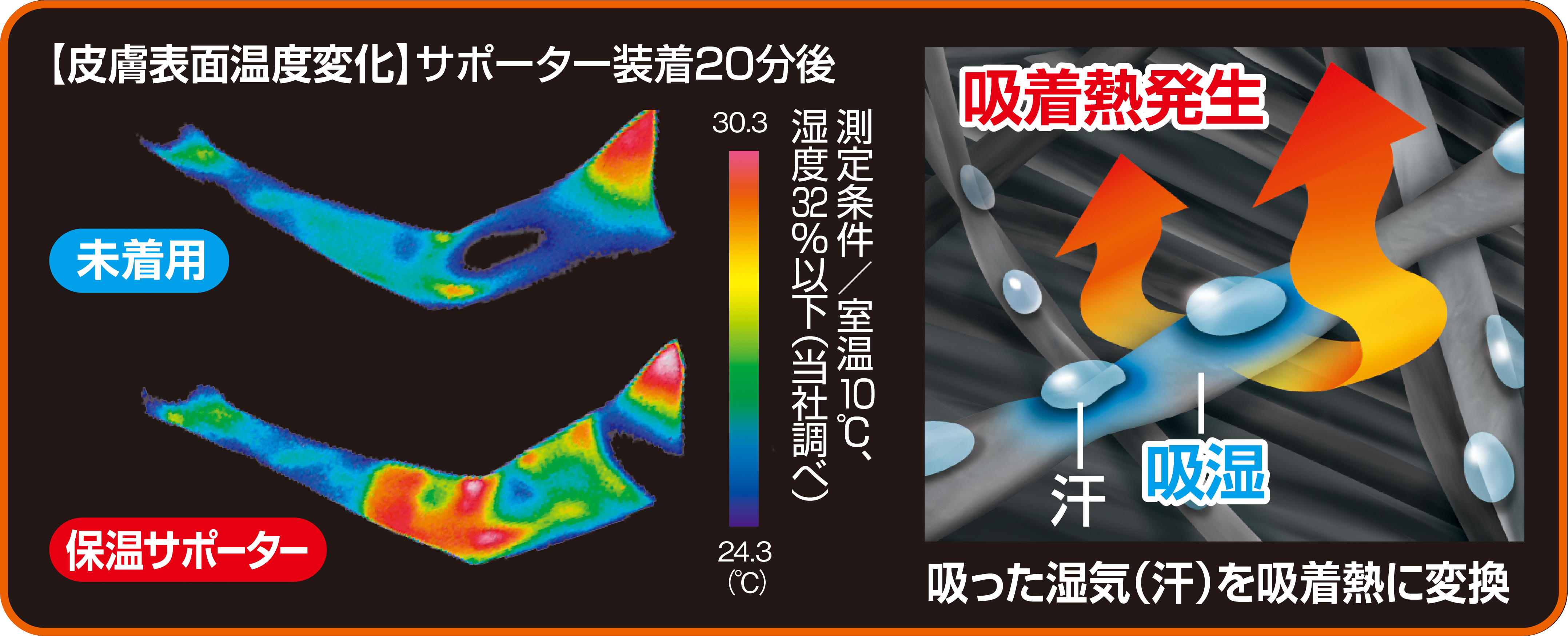 セルフヒートファイバー®がひじを温かく包み込む