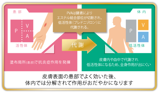 PVAは患部でよく効き、体内では分解されて作用がおだやかになる成分です。