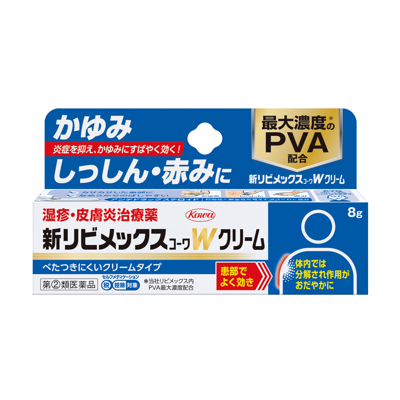 すぐれた抗炎症作用を有するアンテドラッグステロイドPVA0.3%に加え、かゆみ止め成分であるジフェンヒドラミン塩酸塩と皮膚修復成分のアラントイン、血行促進成分のトコフェロール酢酸エステルを配合。かゆみを伴うつらい湿疹・皮膚炎などの皮膚トラブルにしっかり効きます。