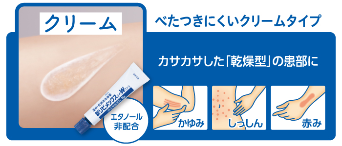 カサカサした「乾燥型」の患部やべたつきを避けたい場合に適しています。