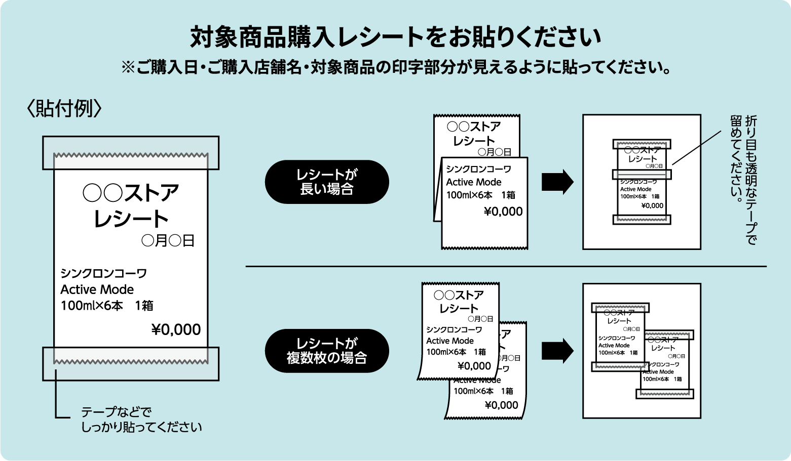 - 応募ハガキの裏面に、レシートをしっかりと貼り付けてください。